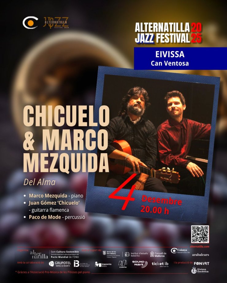 On Thursday, 4 December at 20:00, the Can Ventosa cultural centre will host one of the most anticipated moments of the Alternatilla Jazz Festival 2025: the concert Chicuelo & Marco Mezquida — Del Alma, produced locally in collaboration with Eivissa Escènica.