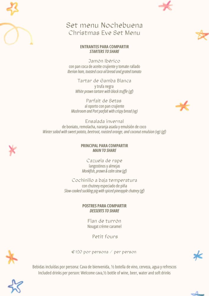 Included drinks per person: Welcome cava, ½ bottle of wine, beer, water and soft drinks