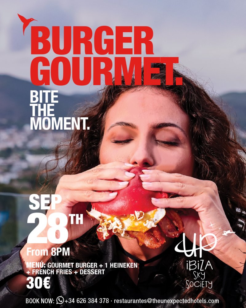 Once a month, the rooftop Up Ibiza Sky Society, located atop The Unexpected Ibiza Hotel, presents Burger Gourmet an irresistible offer for lovers of gourmet burgers and stylish sunsets.