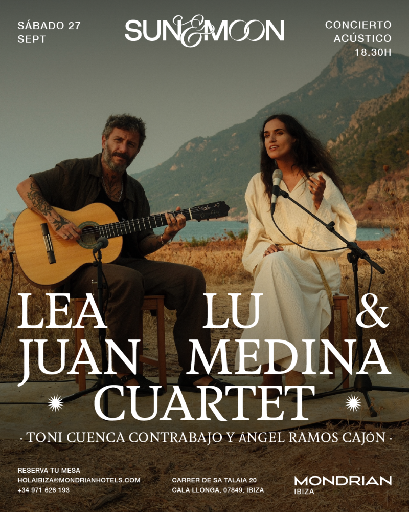 Set against the backdrop of sunset views over Cala Llonga, the concert will feature songs from Lea Lu’s latest albums, I CALL YOU and PHOENIX, original pieces created with Juan Medina, and acoustic versions of jazz classics. The music reflects themes of new beginnings and life’s unexpected moments, blending Lea Lu’s soulful vocals with Juan Medina’s flamenco-jazz rhythms.