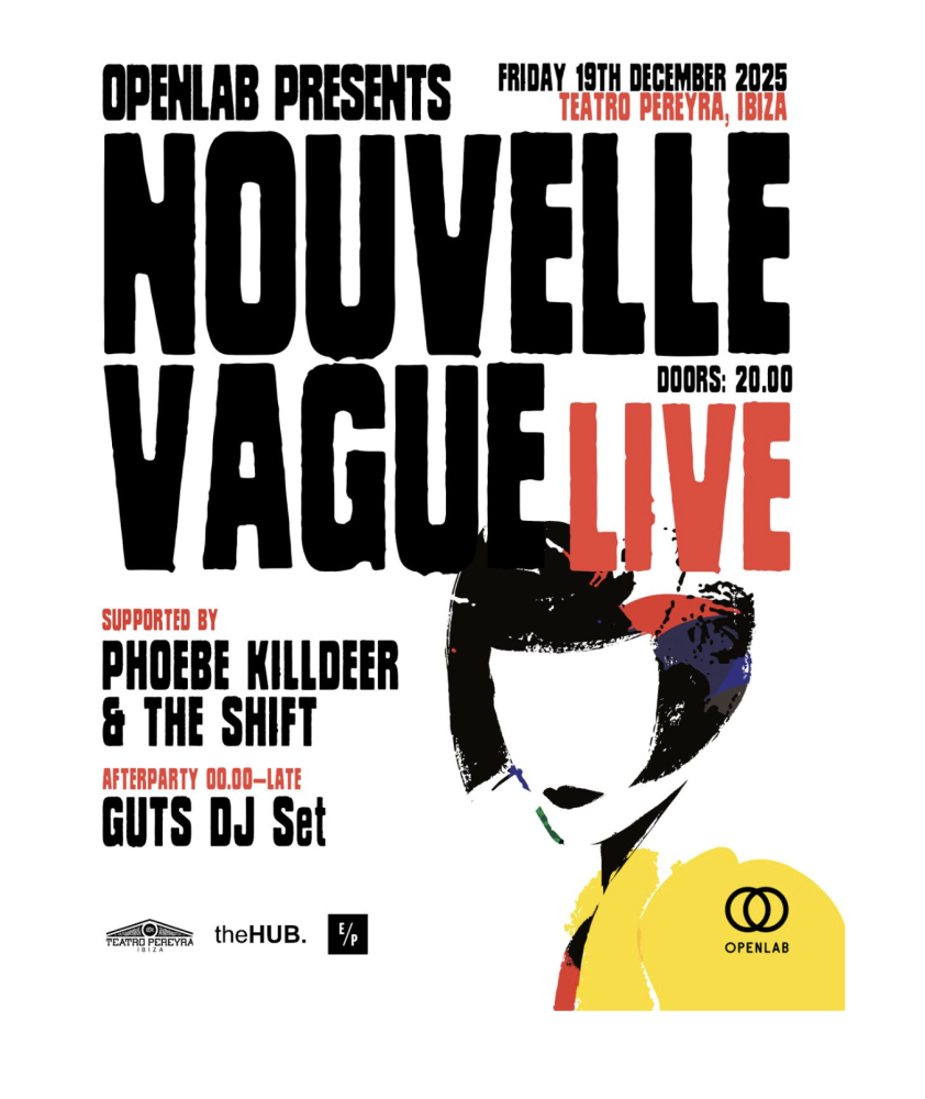 For this exclusive Ibiza date, Nouvelle Vague will be joined by longtime collaborator Phoebe Killdeer & The Shift, before the night flows seamlessly into an after-party at Café Pereyra, curated by world-music icon GUTS — bridging live performance and late-night club culture in true OpenLab style.