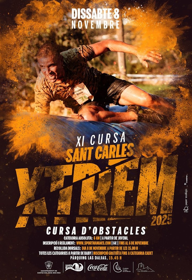 The Santa Eulària des Riu Town Council organises a new edition of Sant Carles Xtrem Race, a thrilling obstacle course that takes place on Saturday, 8 November. Participants will tackle a 1,200 metre circuit, closed to traffic, with competitors in the adults' category completing five laps for a total of 6 kilometres. The races start at 15:45 at Las Dalias parking.