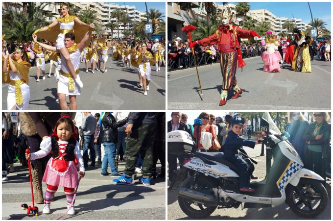 We arrived in plenty of time for the 11.30 am start of the procession, to find the streets already lined with hundreds of spectators, many of whom were in fancy dress themselves; mums & dads with toddlers, even babies in pushchairs, dressed up as pirates, Spiderman and traffic cones…to name just a few. What was particularly striking was the wide cross-section of ages, nationalities and people from all walks of life coming together to celebrate; it seemed the whole of Ibiza was in the mood for a party!