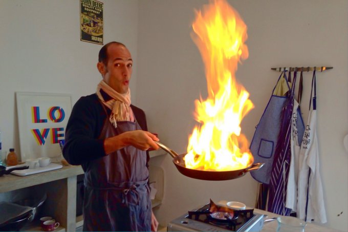 The classes are held in a large, light and well-appointed kitchen. There are cooking hobs for each student - everyone has the opportunity to cook their own dish. This is great because cooking is hands on and best learnt from experience. The Valentine themed menu, in full, consisted of Fillet steaks with two sauces, Hollandaise and Flambéed Brandy Cream, Homemade Chips and Passion Fruit Souffle.