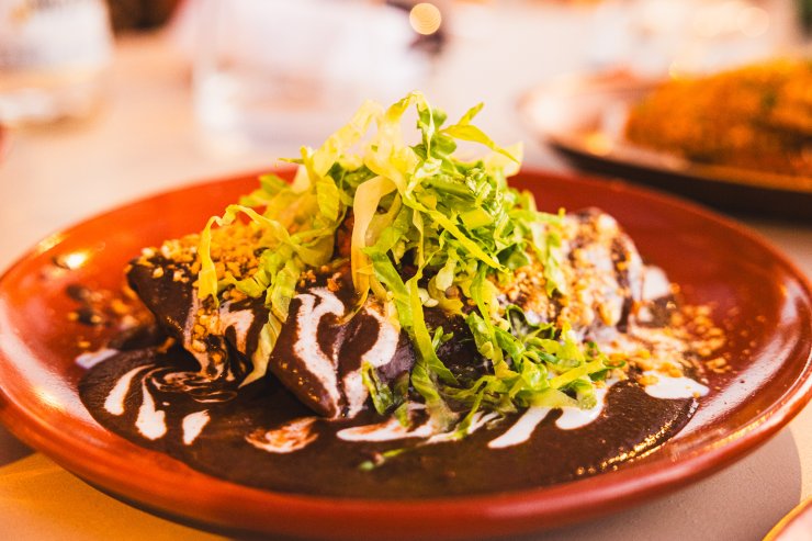 The classic enchilada was stacked full of chicken and smothered in earthy, warming and slightly creamy refried bean mole. Guajillo chile gave the sauce that fruity, smoky edge.