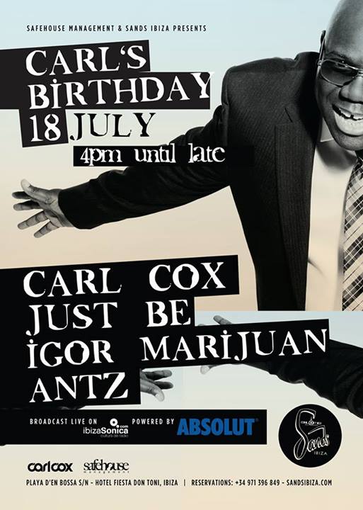 This Thursday the 18th of July all you'll need to do is get yourself down to Sands Ibiza on the grainy banks of Playa d'en Bossa and you'll experience one of the happiest parties on the island. Bringing the tunes will be Antz, Igor Marijuan, Just Be and the birthday boy himself, Carl Cox.