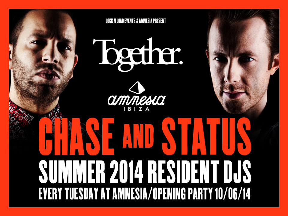 “After three amazing years of playing Together at Amnesia each summer, we're honoured to be following in the footsteps of Ibizan titans like Carl Cox, Richie Hawtin, Luciano and Sven Vath in being invited to do a weekly residency at an Ibizan superclub. It's very exciting to be the first bass act to have a weekly residency in Ibiza, and we can't wait for the summer!” - Chase & Status