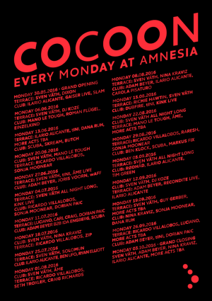 Having confirmed its longest ever season at Amnesia, running for 19 dates from 30th May, Cocoon has so far only teased us with a tantalising glimpse of who's set to appear over the course of summer, as well as promising Dixon, Ilario Alicante, Gaiser and Slam for the opening party. But now, the news we have been waiting for is here, and finally we can start planning our lives around Monday nights, and how we'll continue with the rest of the week in a post-Cocoon slump.