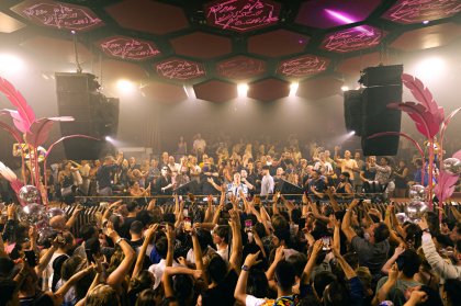 The film crew which joined the mass of arm swaying clubbers had picked a good week to get involved as the club was bouncing all the way from the funky room to the global. Catching the core of Tong's set I was soon joining the friendly crowd stomping along to his embracing style. The beginning of his set featured garage sounds which were perfectly mixed with some mischievous tech beats and a thumping bass giving life to a solid shoulder wiggle which spread rapidly across the room. With champagne flowing inside the booth the happy September vibe was powerfully inflicted onto the floor and the lasers sparked the house hungry fire in all of our bellies as the beats rolled on.