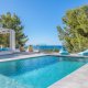 From the pool deck, exterior dining area and private terraces, guests are treated to delightful views across the turquoise waters of the bay to Conejera Island and beyond. Gaze down the hillside and you can see the boats bobbing on the water in the harbour of Cala Tarida. The beach is just four minutes away and here.